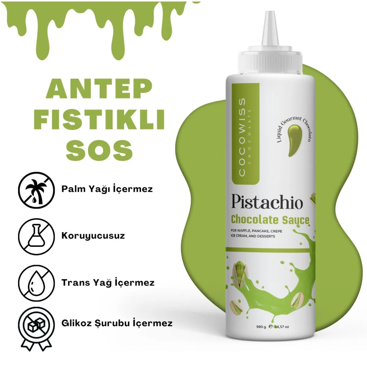 COCOWISS CHOCOLATE Pistachio Waffle & Crepe & Pancake Chocolate Sauce 300gm